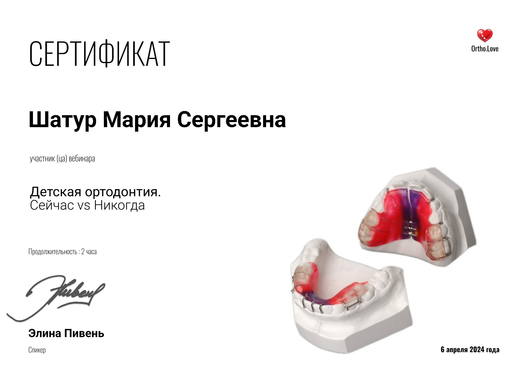 - Элина Пивень. Вебинар «Детская ортодонтия. Сейчас vs Никогда, 2024