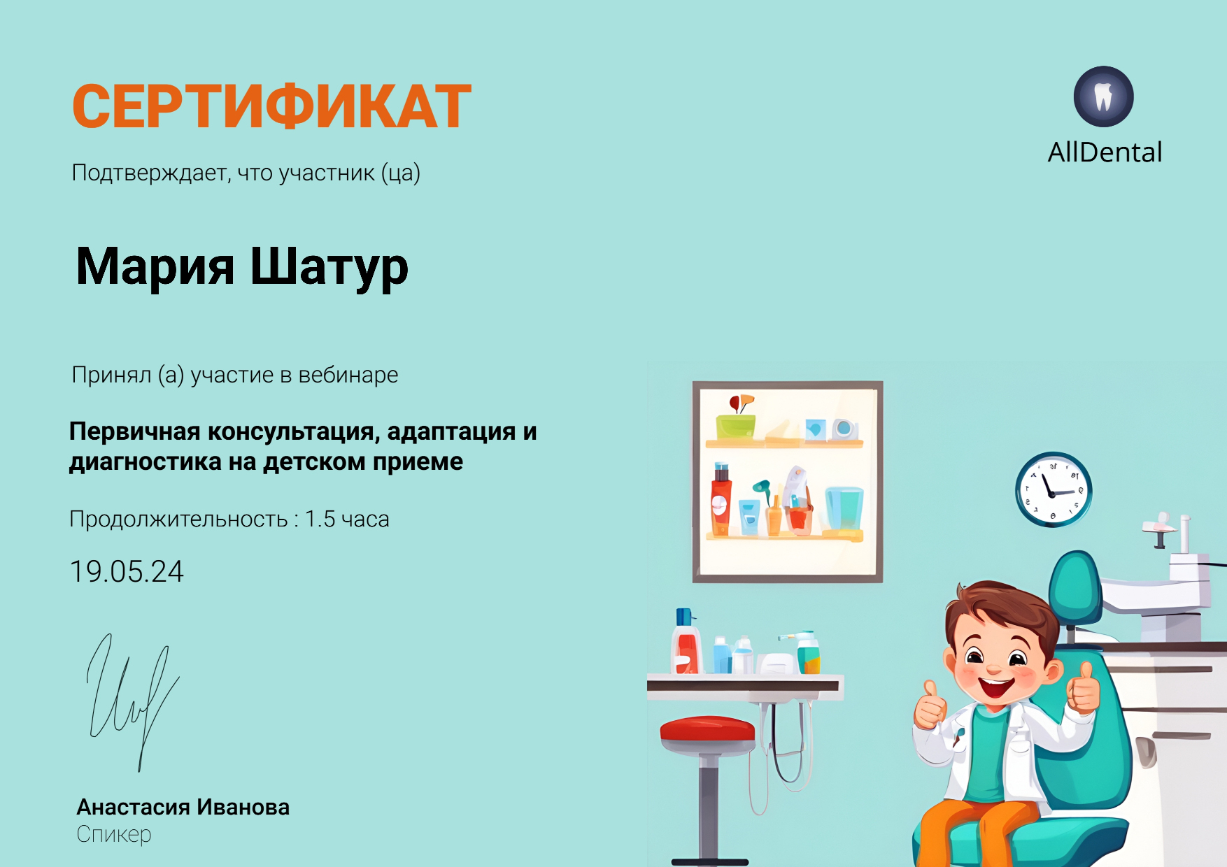 - Анастасия Иванова. Вебинар «Первичная консультация, адаптация и диагностика на детском приеме», 2024