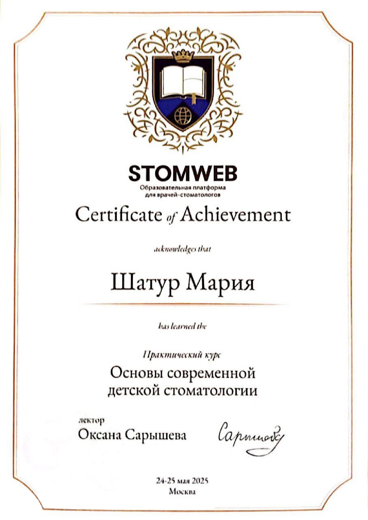- STOMWEB. Оксана Сарышева. Практический курс «Основы детской стоматологии», Москва, 2025