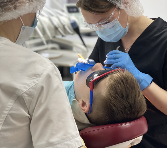 - Объяснение процесса. Перед процедурой стоматолог подробно объясняет ребёнку, что будет происходить. Использование простого и понятного языка помогает снизить уровень тревожности и даёт возможность ребёнку и родителям задать вопросы.